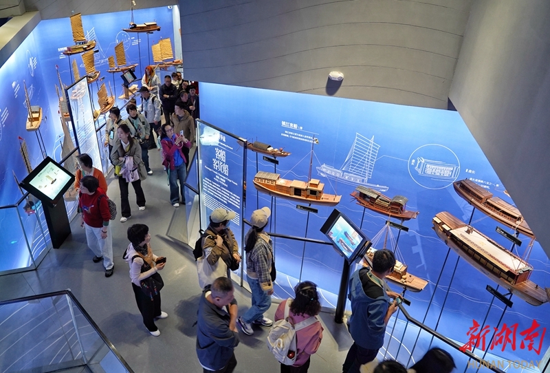 4月23日,江苏省扬州市,游客在中国大运河博物馆参观。该馆馆藏有自春秋至当代反映运河主题的古籍文献、书画、碑刻、陶瓷器、金属器、杂项等各类文物展品1万多件(套),系统展示了千年运河的历史变迁、水利智慧及其对沿线地区社会生活、商贸往来和文化交流的深远影响。湖南日报全媒体记者 徐行 摄