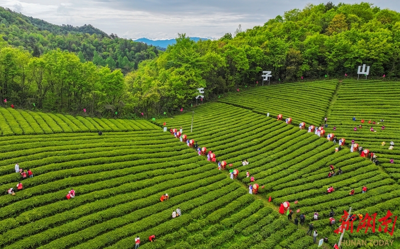 4月23日,参赛选手与游客在张家界武陵源天子山茶园采摘新茶。当天,2026武陵源首届茶旅文化周“天子山红茶”斗茶大会启幕。来自武陵源本土的15支竞赛队同台竞逐茶技。大会设置茶园采茶、红茶制作展示等兼具专业与观赏性的环节,吸引不少游客前来沉浸式感受茶旅文化的魅力。邓道理 摄(湖南图片库)