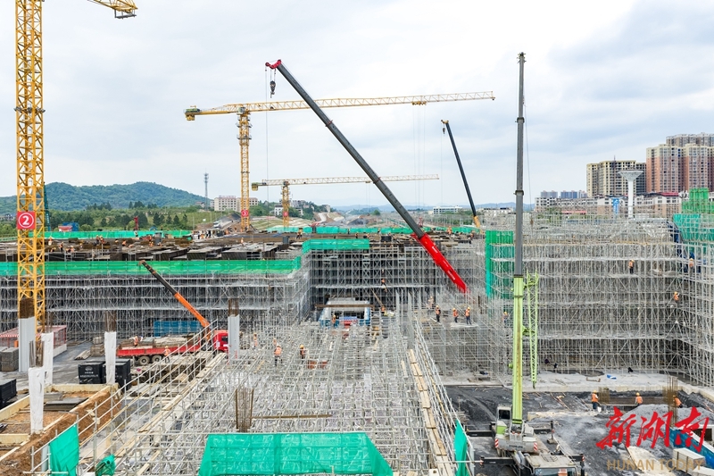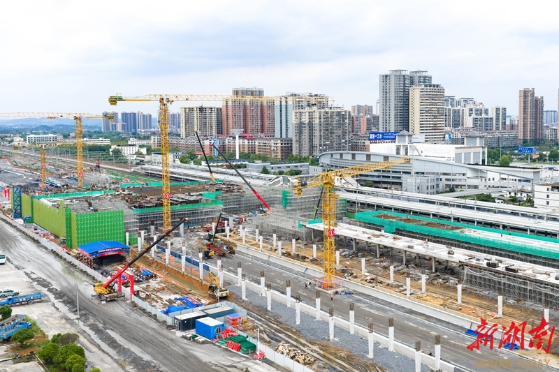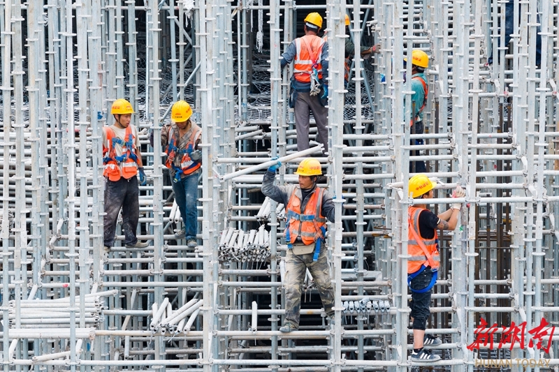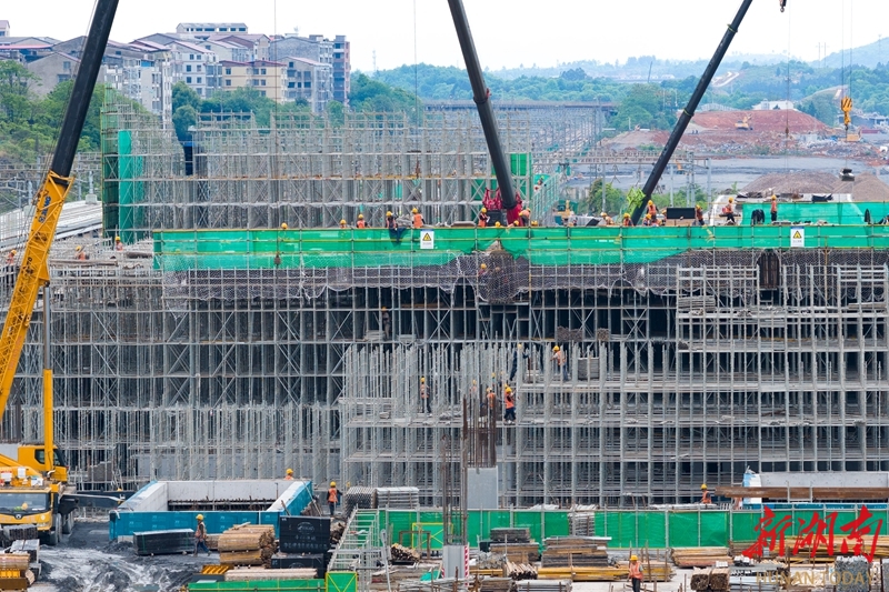4月23日,邵永铁路永州站改造工程建设项目,施工人员在进行高架候车厅主体结构施工。由沪昆客专湖南公司建设、中铁建设集团有限公司承建的永州站站改工程是邵永高铁关键控制性项目,站台规模由3台13线扩建为6台18线。项目建成后,永州站将成为集邵永高铁、衡柳铁路及规划中广清永高铁于一体的综合性交通枢纽,打通湘南地区对接粤港澳大湾区的高铁瓶颈。雷中祥 蒋凌志 摄影报道(湖南图片库)