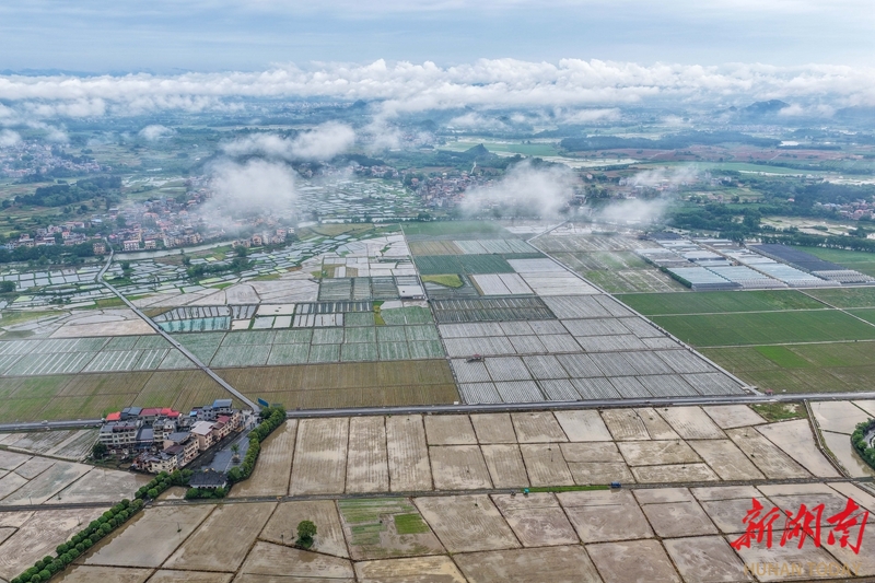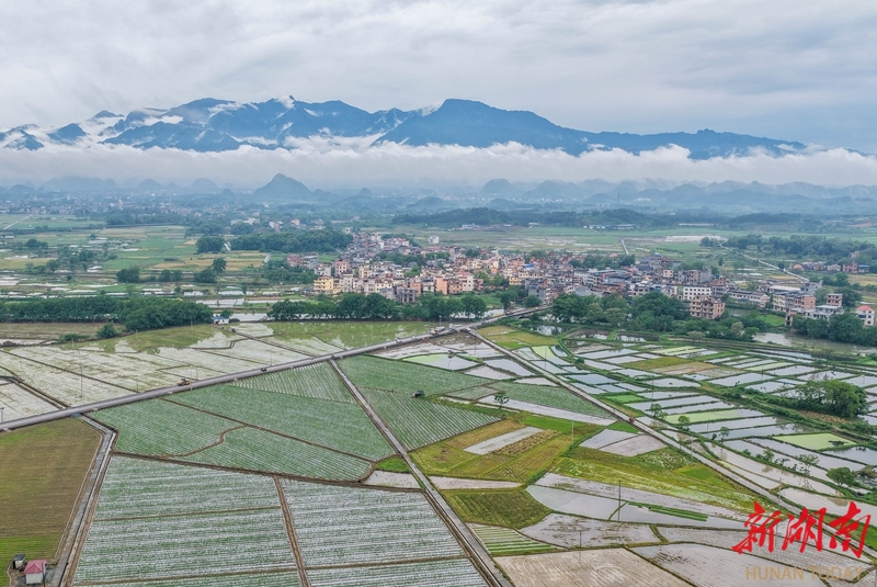 4月23日,道县清塘镇,田园、村庄、群山和云雾交相辉映,勾勒出一幅秀美的春日图景。蒋克青 摄(湖南图片库)
