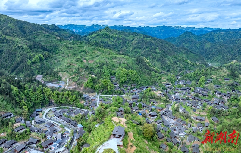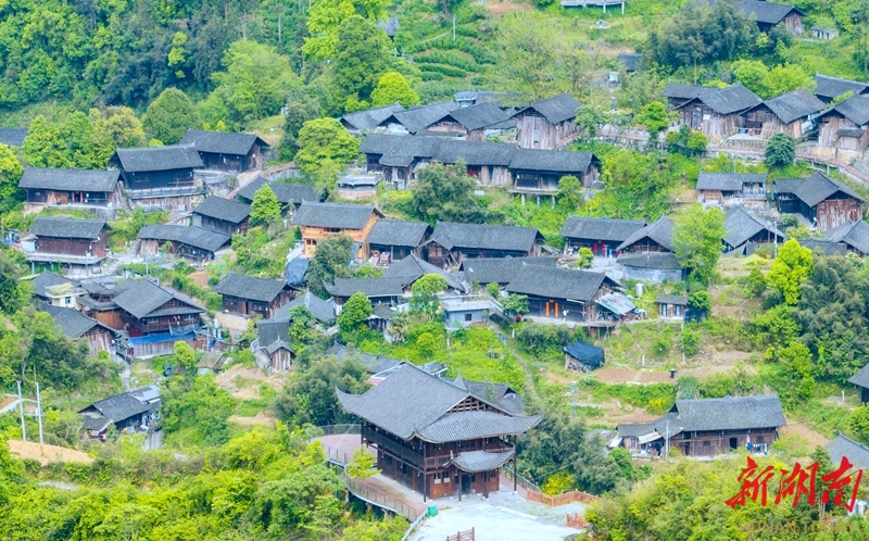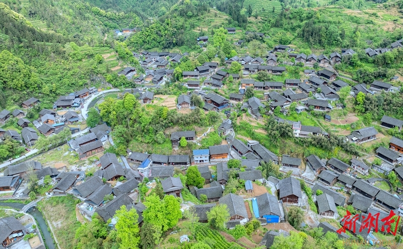 4月23日,风景优美的保靖县吕洞山镇夯吉村。该村落位于吕洞山南麓峡谷地带,民居依山脊呈鱼鳞状分布,现存425栋木结构建筑占比超95%,形成“九龙夺宝”建筑景观,其气势堪比贵州西江千户苗寨。 湖南日报全媒体记者 李健 摄