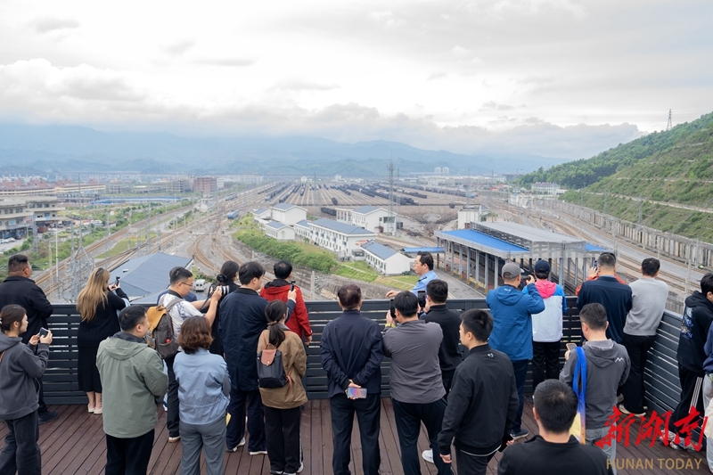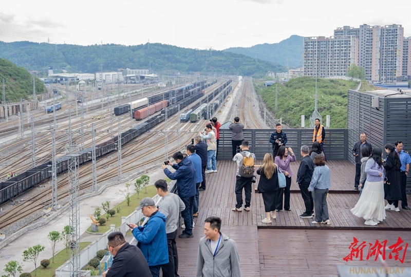 4月23日,参加“中国式现代化的万千气象”网络名人湖南行活动的嘉宾,走进怀化国际陆港核心板块——怀化西编组站,实地探访这座联通全国、辐射东盟的铁路物流枢纽。依托这一核心枢纽,怀化国际陆港实现了与全国铁路网的无缝衔接,并常态化开行前往老挝、越南等东盟国家的国际班列,正成为湖南面向东盟的国际物流战略支点。湖南日报全媒体记者 李健 摄