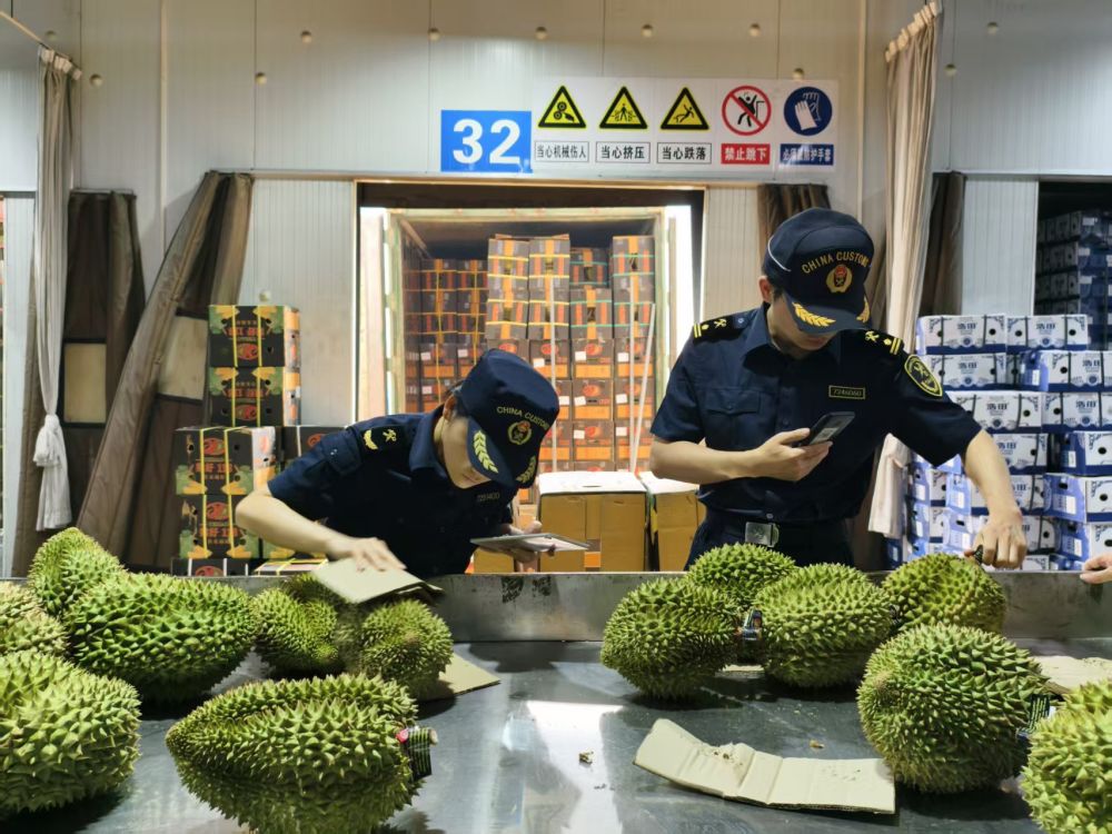 “当前正值榴莲上市季节,国内市场需求旺盛。”广西南向跨境运输有限公司总经理魏国振一边接打电话,一边协调运输计划。近期公司每天有20多个集装箱泰国榴莲经友谊关口岸入境,车辆最快3小时即可完成全部手续,并发往广东、浙江、江苏等地。