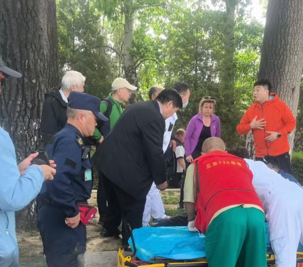 几乎在同一时间,颐和园工作人员也发现了异常。保安人员赵常富、王文涛立即上前维持秩序,疏散围观游客,留出急救通道,并及时与120救护车保持联系。几分钟后,120急救车抵达现场,工作人员协助将患者抬上车,并一路引导救护车快速驶出园区。“工作人员来得很快,一个维持秩序,一个打电话。”现场一位游客回忆道。