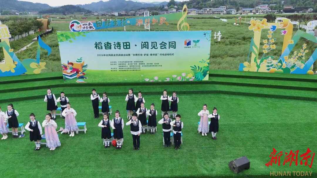 湖南日报·新湖南客户端4月24日讯(通讯员 唐家兴)23日,以“稻香诗田·阅见会同”为主题的会同县2026年全民阅读活动暨“扫黄打非·护苗·绿书签”行动启动仪式,在该县堡子镇稻香诗田景区田野舞台举行。本次活动由中共会同县委宣传部(县新闻出版局)主办,县委网信办、县文旅广体局、县教育局等多部门联合协办,全县机关单位代表、学校师生、自媒体从业者及各界群众齐聚一堂,共同开启新一轮全民阅读推广的序幕。