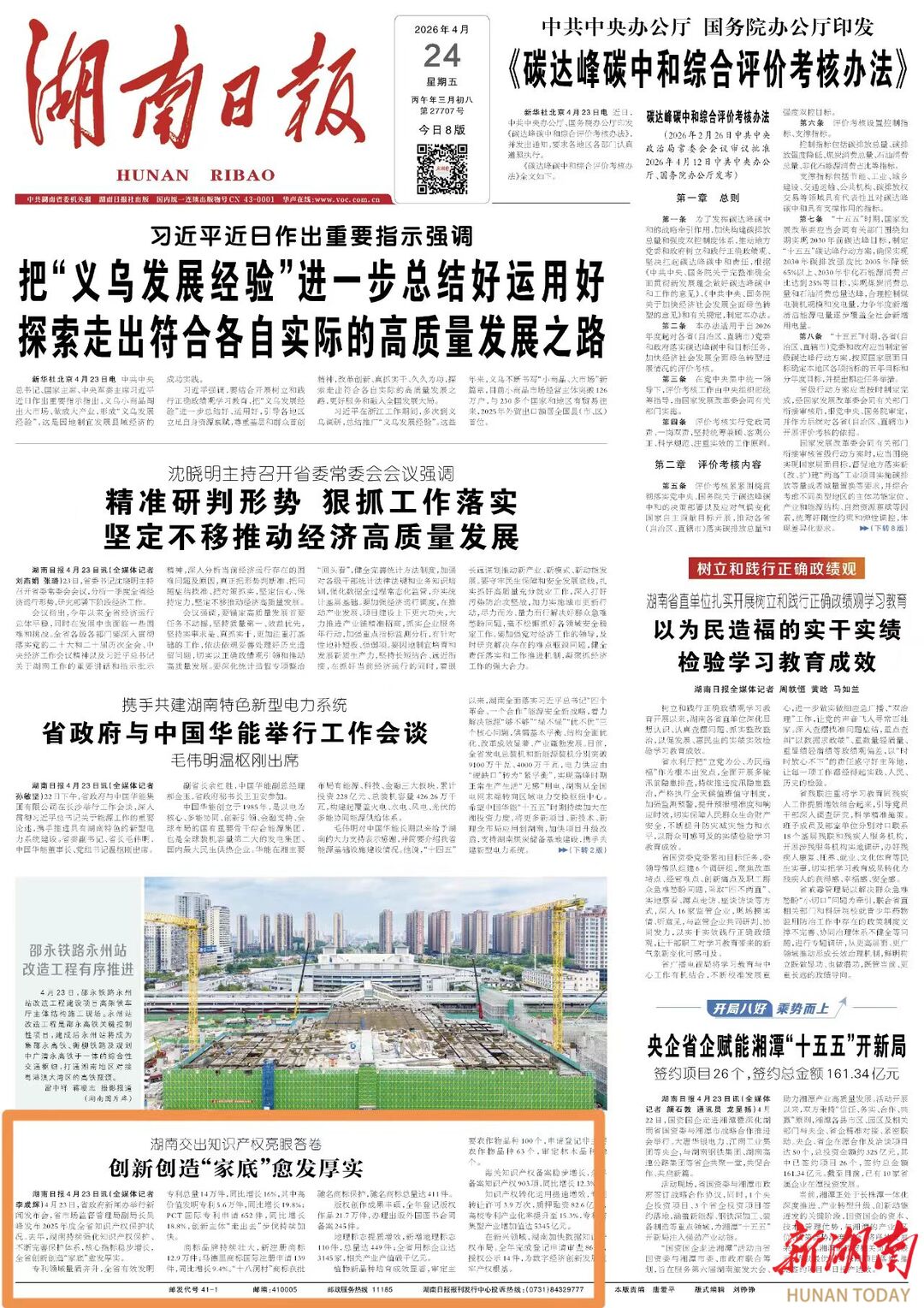 4月24日湖南日报头版