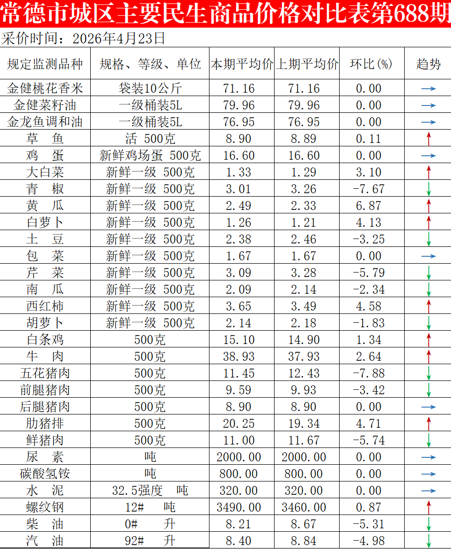 为方便群众了解民生商品市场价格动态,常德发展改革委通过“常德发改微信公众号”发布近期市城区主要民生商品价格情况。
