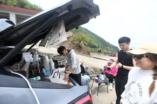 流量的溢出效应肉眼可见。山上的农家乐,山下的民宿、饭店每天爆满,午餐服务都要供应到下午三四点。不少农户也加入快餐、点菜服务行列,连带镇上宾馆、饭店客流量也持续上升。由本地村民自发组成的摩托车接驳队、山口的土特产摊主收入普遍翻了好几番,顶峰腊肉、非遗油纸伞一度卖断货,一些老人把自家挖的春笋、晒的干菜摆在路边,一天也能赚上几十甚至上百元。流量红利还吸引了来自长沙的年轻“后备厢”咖啡摊主、臭豆腐摊主等。杨燎原介绍:“原先,附近从事餐饮、住宿行业的大约50人,现在起码有五六百名从业者。”