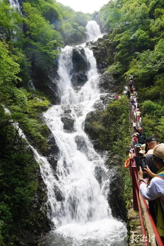 “景区有8个出入口,每一处都安排了两到三人值守。在瀑布区域,每10米就有一名志愿者进行安全维护和宣讲,同时还设置了3个医疗点。同时,村民家的地坪、厕所均免费向游客开放。在道路上、在景区里,到处都能找到我们的镇、村干部和志愿者,我们为游客时刻准备着!”杨燎原说。
