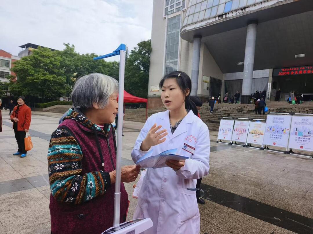 活动中,新田县卫生健康局、县中医医院工作人员现场为群众测量血压、身高和体重,并根据测量数值计算体重指数(BMI),为市民提供个性化健康指导和咨询服务。现场气氛热烈,受到群众一致好评。