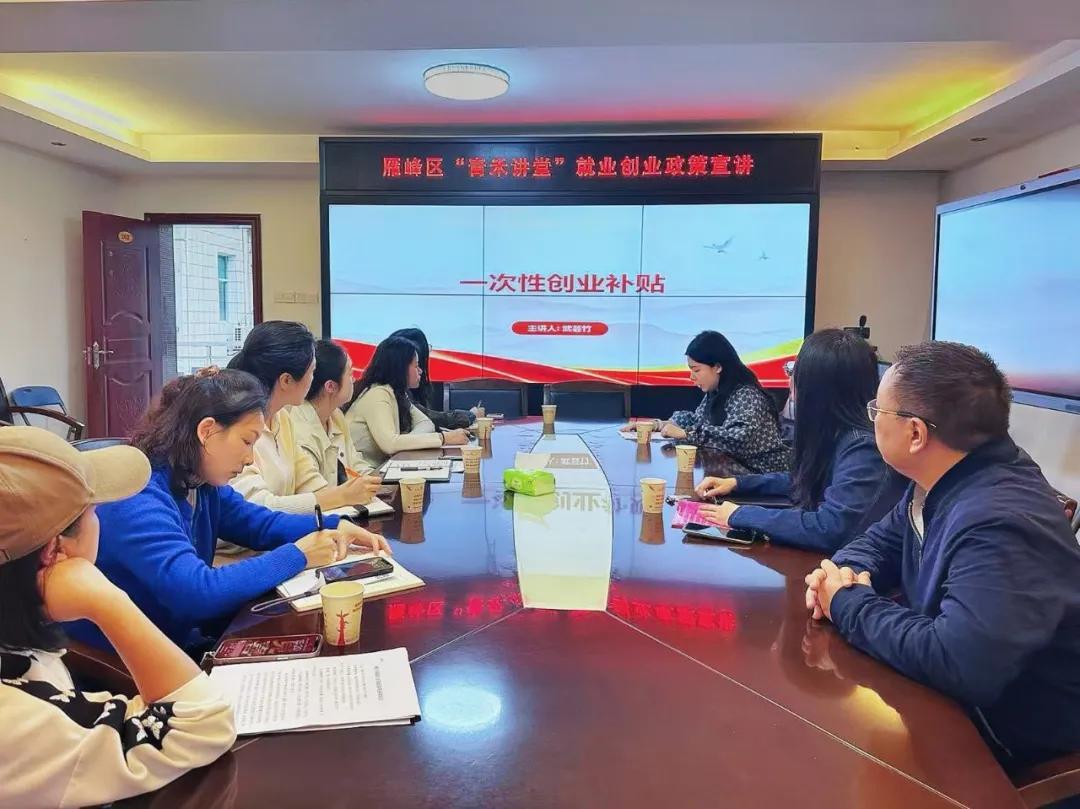 湖南日报·新湖南客户端4月24日讯(通讯员 杨海静)为推动就业服务资源下沉、破解基层经办堵点难点,近日,雁峰区人社局以“雁筑民生”党建品牌为引领,将“青禾讲堂”打造成“党建+就业”政策宣讲特色载体。活动由党员业务骨干组建宣讲专班,打破“大水漫灌”式宣讲模式,立足基层经办需求精准发力,为各街道、社区就业经办人员送上了“量身定制”的政策“干货”。