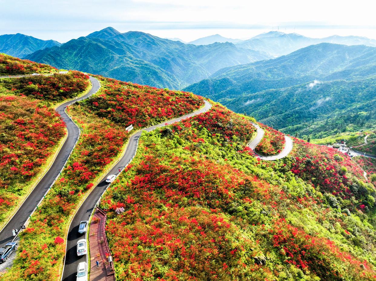 时下,多地野生杜鹃迎来盛花期,漫山杜鹃绚烂如霞,吸引不少游客前来赏花游玩。