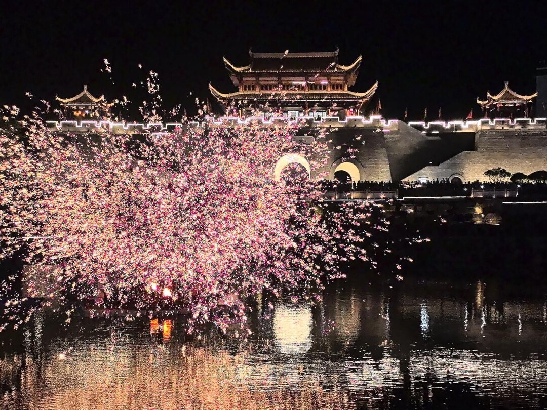 旅程的首站,我们抵达了太平古城。夜幕低垂,华灯初上,古老的城墙在灯光的映衬下更显沧桑与厚重。然而,真正让今夜沸腾的,是那传承千年的非遗绝技——打铁花。只见匠人们赤膊上阵,将千余度的铁水奋力击向高空,刹那间,铁水在空中炸裂,化作万千金星,如流星雨般倾泻而下,又似火树银花不夜天。那滚烫的铁花与漆黑的夜空交织,光影交错间,好似时光倒流,让人恍惚置身于古代的盛大庆典之中。围观者无不屏息凝神,惊叹于这力与美的极致碰撞。那一刻,火花不仅照亮了古城的夜空,更点燃了每个人心中对传统文化最纯粹的敬畏与感动。太平古城之夜,因这漫天铁花而变得魔幻迷离,让人久久不能回神。