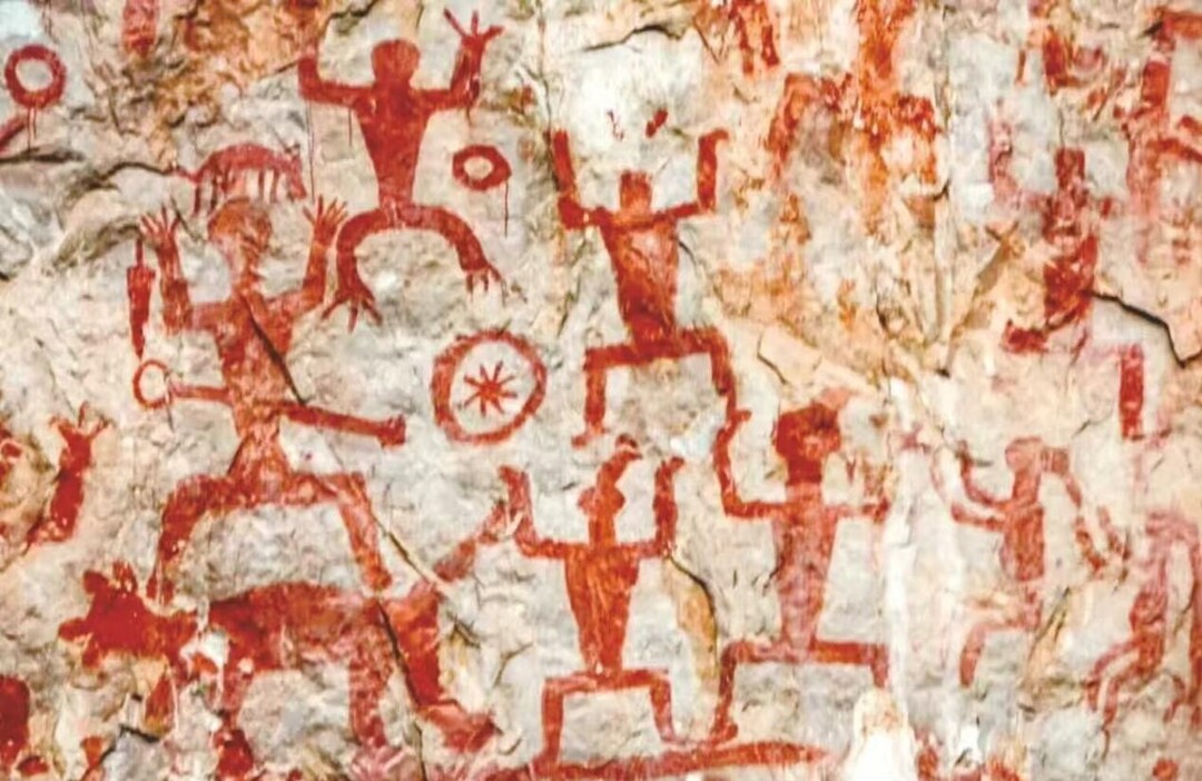 次日,车轮向西,我们驶向了宁明县,只为瞻仰那悬崖峭壁上的千年谜题——花山岩画。乘船沿明江而行,两岸青山相对出,碧水悠悠绕指柔。当船行至花山脚下,抬头仰望,只见赭红色的岩画密密麻麻地分布在百米高的悬崖之上,历经两千多年的风雨侵蚀,依然色彩鲜明,栩栩如生。那些粗犷的线条勾勒出持刀舞蹈的蛙形人像、形态各异的铜鼓以及神秘的祭祀场景。它们虽静默无言,却仿佛在诉说着古骆越人虔诚的信仰与辉煌的历史。面对这一世界文化遗产,我们不禁感叹人类文明的坚韧与伟大。在这山水之间,岩画与自然融为一体,构成了一幅天人合一的宏大画卷,让人在凝视中陷入深深的沉思,仿佛听到了远古传来的鼓角争鸣。