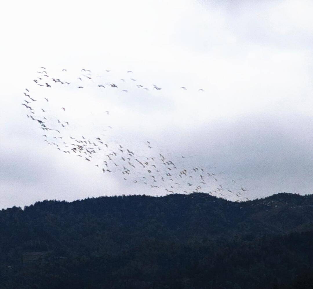 如今的屏风界,已真正成为候鸟心中的“安全岛”。鸟儿们年复一年如约而至,用翅膀为这里的生态保护投下最珍贵的赞成票。当万鸟翔集的壮观景象映入眼帘,每个驻足凝望的人都能读懂;生态文明从来不是抽象的叙事,它藏在鸟翼划过天空的弧线里,藏在护鸟人手电筒的光束中,藏在人与自然和谐共生的每一个瞬间。