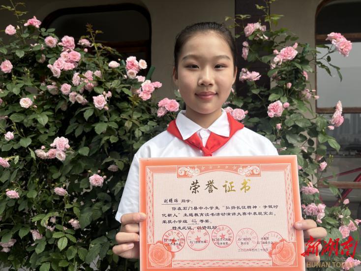 科教新报·新湖南客户端讯(通讯员 覃维维 覃业彦)4月24日,石门县中小学生“弘扬长征精神·争做时代新人”主题教育读书活动演讲大赛落幕。来自石门县闫家溶完全小学的学生刘曦瑶凭借丰厚的红色阅读积淀、真挚饱满的情感张力与声情并茂的舞台演绎,在全县小学组众多参赛选手中脱颖而出,一举摘得大赛特等奖,用家乡的红色故事,生动诠释了新时代少年对长征精神的传承与理解。