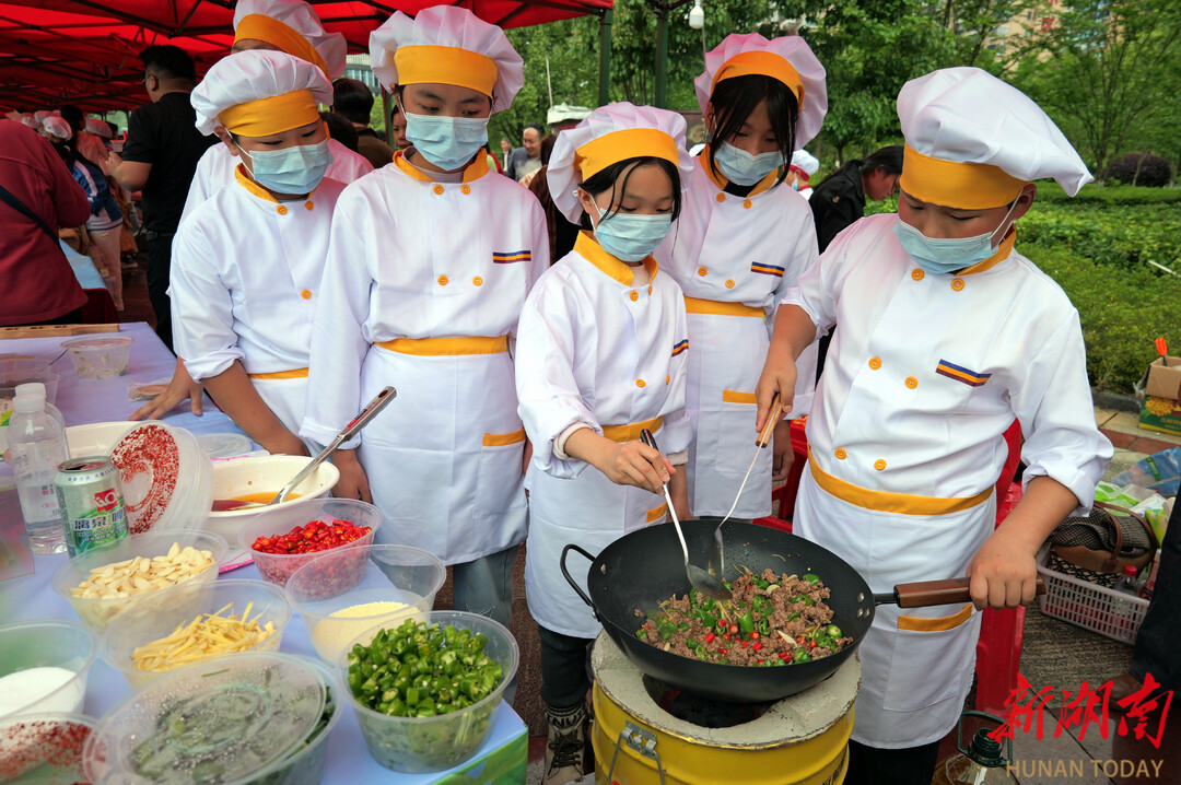 书法展示区里,一幅幅书法作品笔力遒劲,国画、剪纸精致好看,还有同学们工整的读书笔记、详实的实践报告和创意手工作品,每一件都是大家读书和实践的心血。“校园主厨”春享市集更是人气爆棚,作为第三届祁阳市劳动教育项目化展示的核心环节,各个单位的展台整齐排列,同学们化身“小主厨”,分工合作,现场制作家常菜、祁阳特色菜、时令菜等各种美食,糖醋排骨、曲米鱼、艾草糯米粑香气扑鼻。同学们一边做菜,一边自信地讲解做法、菜品文化和劳动心得,互动特别热烈。评委们现场打分,评选出优秀厨队和不同等级的“校园主厨”,还推荐了“校园美味”“校园营养菜”,让劳动教育更有意义。现场还有试吃环节,大家一边尝美食,一边感受劳动的快乐,“耕读知行”的理念也慢慢走进了每个人心里。