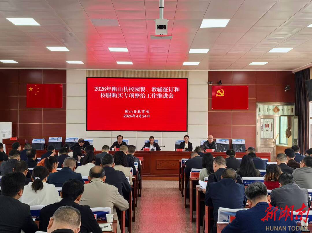 科教新报·新湖南客户端讯(通讯员 李正芳 唐可为)4月24日上午,衡山县召开2026年“校园餐”、教辅征订、校服购买专项整治工作推进会。会议按照“纠建并举,标本兼治”原则,全面部署、推进整治工作。