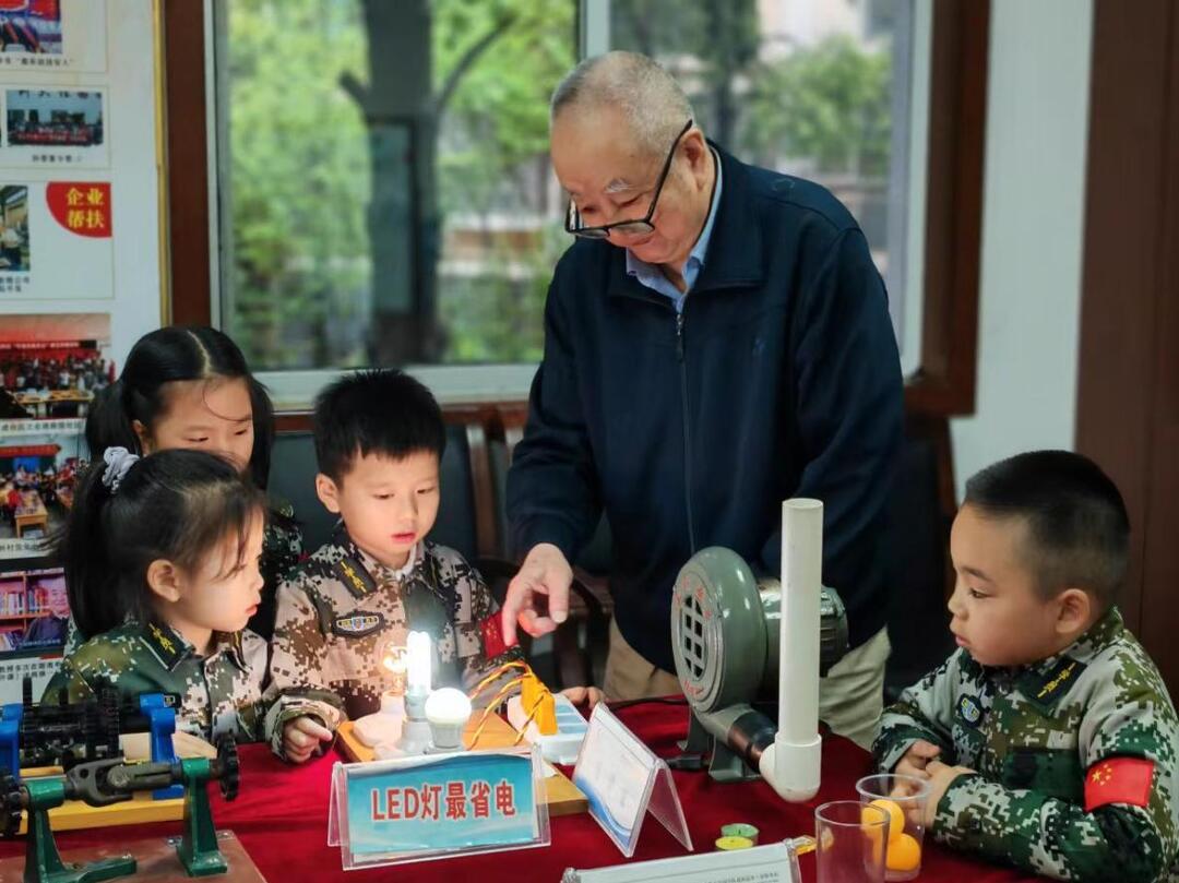 本次科艺节面向全体幼儿开展了一系列丰富多彩的航天科技主题活动。孩子们走进科大家园社区的老兵科普队,在国防科技大学退休教授杨昂岳爷爷的带领下,开展沉浸式航天科普活动,杨昂岳用通俗易懂、童趣盎然的语言讲解航天知识,带领幼儿触摸科技、探索奥秘,在孩子们心中播下热爱科学、勇于探索的种子。