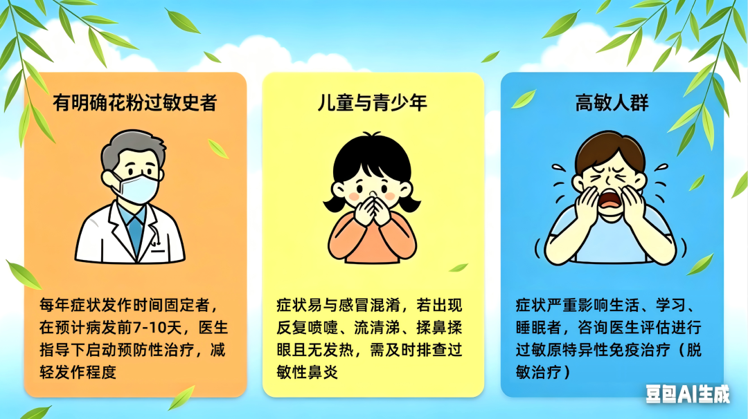 春季风沙易刺激鼻黏膜,重点防风、防尘、保暖,减少外界刺激;关注入夏后花粉变化趋势,提前建立防护意识。