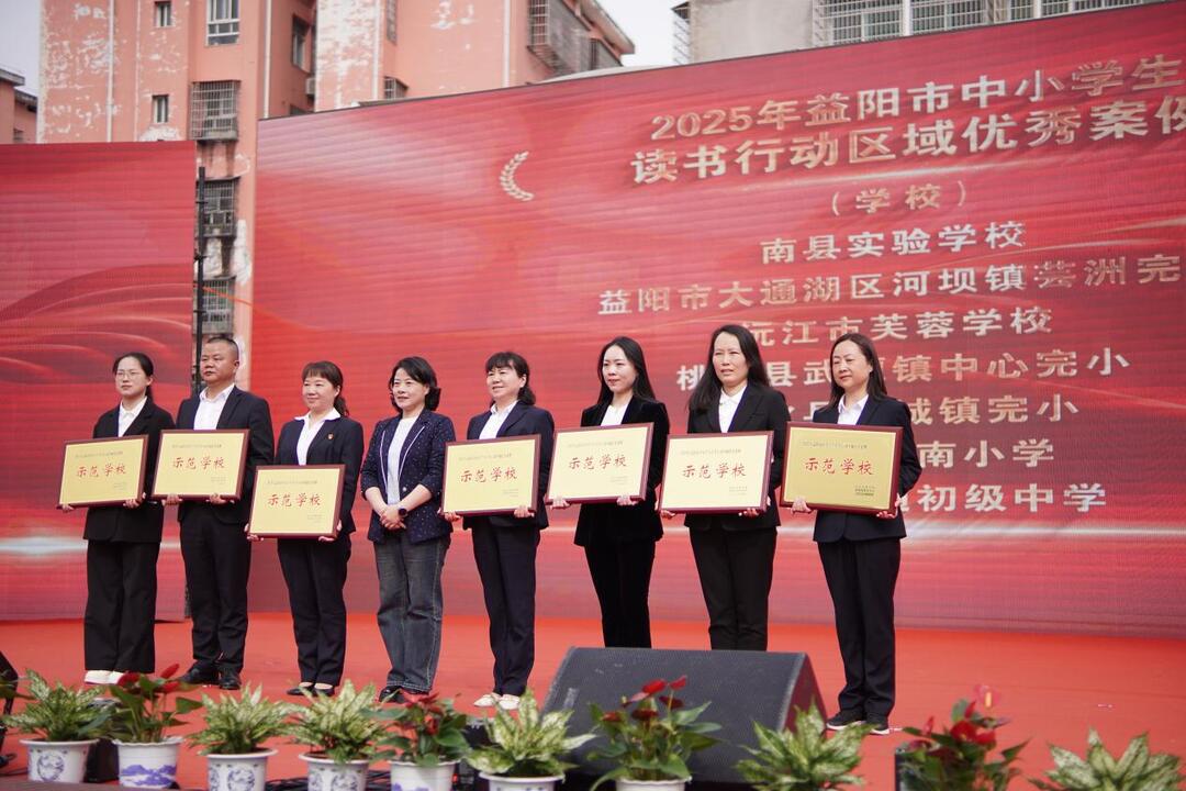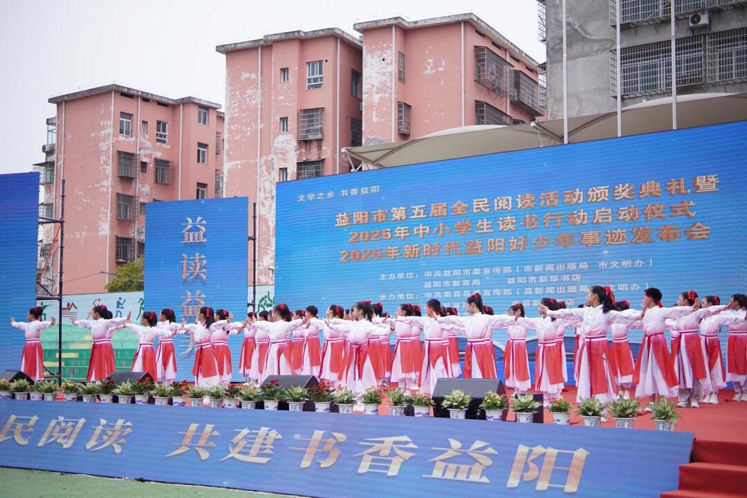 新湖南客户端4月24日讯(通讯员 杨容)4月24日,益阳市第五届全民阅读活动颁奖典礼暨2026年中小学生读书行动启动仪式、2025年新时代益阳好少年事迹发布活动在南县实验学校举行。本次活动由益阳市委宣传部、市教育局、市新华书店主办,南县县委宣传部、县教育局、县新华书店承办,南县实验学校全程协办。现场书香涌动,文韵悠长。