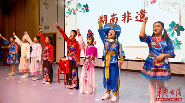 (学生们带来《潇湘匠心,非遗之光》节目 以上照片由清水塘江湾小学供图)