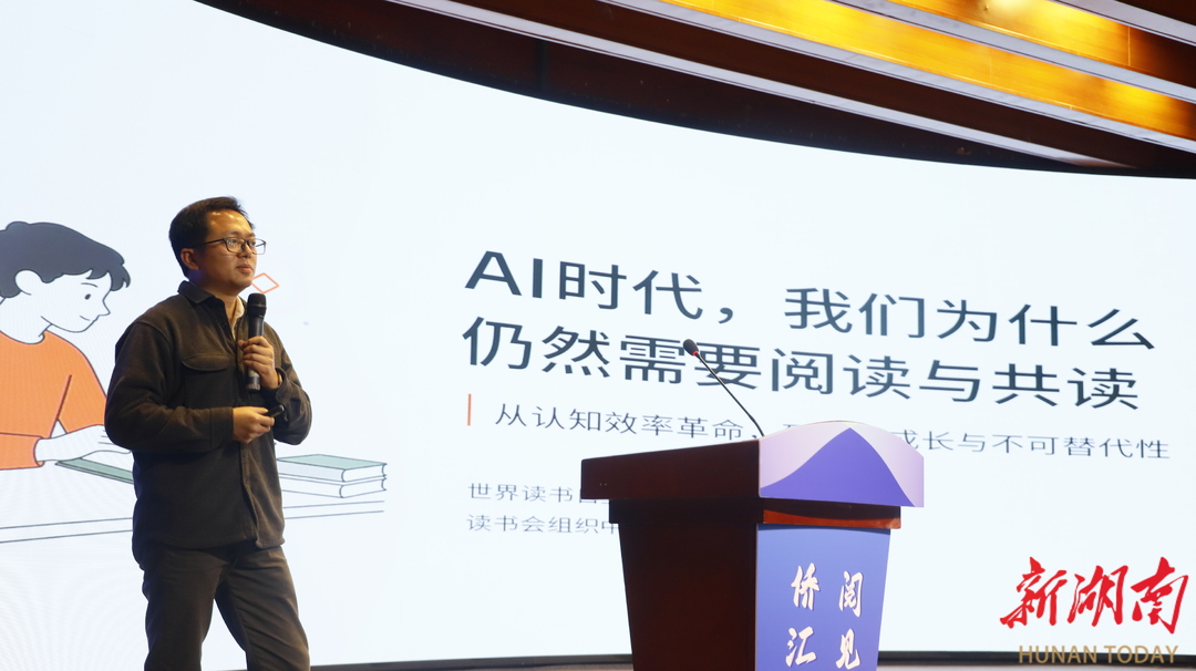 湘江新区(岳麓区)侨联委员、长沙猎梦阅读文化推广中心理事长沈佳围绕“AI时代,我们为什么仍然需要阅读与共读”分享感悟。他认为,AI大幅降低知识获取成本,“思考力”成为核心竞争力,而阅读与共读正是对抗认知窄化、守护思想深度的重要路径,能让散落的个体因思想共鸣连成星河。