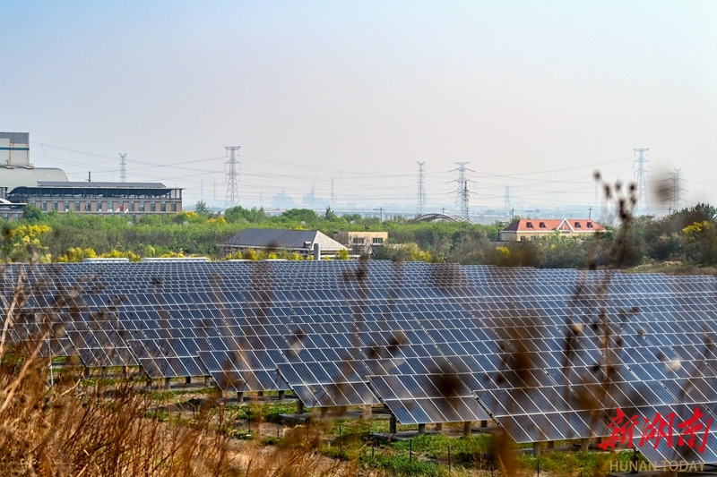 4月23日,天津市滨海新区循环经济产业园,一排排光伏板正源源不断生产绿色电能。 湖南日报全媒记者 李梓延 摄