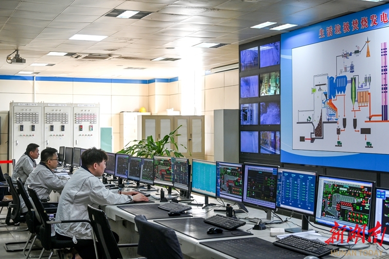 4月23日,天津市滨海新区循环经济产业园,工作人员在滨海新区第一垃圾发电厂监控生产情况。 湖南日报全媒记者 李梓延 摄