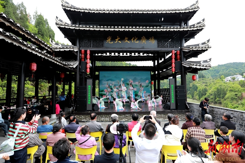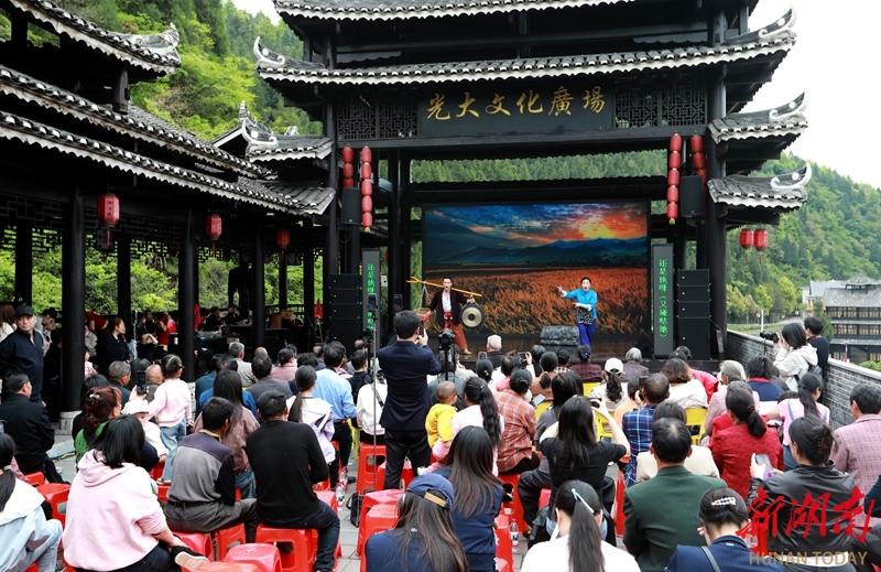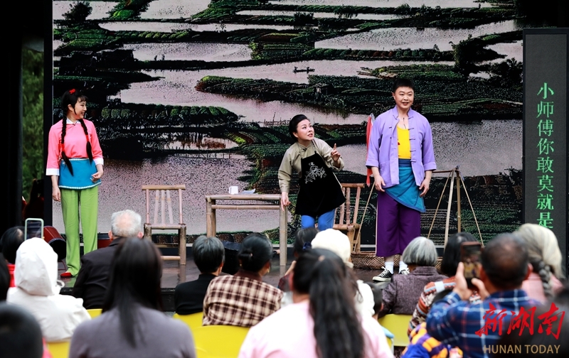 4月23日,湖南省花鼓戏剧院联合娄底市地域文化传承研究中心,走进新化县油溪村开展送戏下乡惠民演出活动。艺术家们将经典剧目与精彩节目送至村民家门口,以专业表演传递戏曲魅力,为当地群众送上了一场丰盛的文化大餐,丰富了乡村精神文化生活。刘凯 摄(湖南图片库)