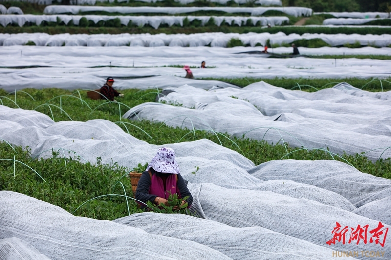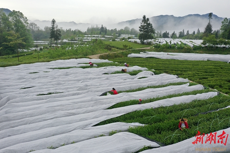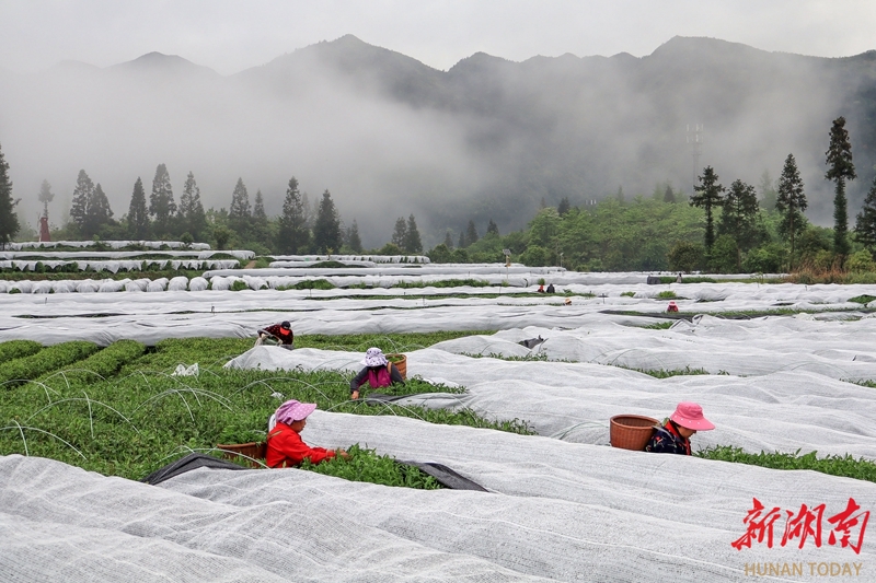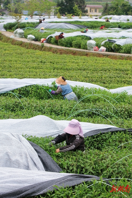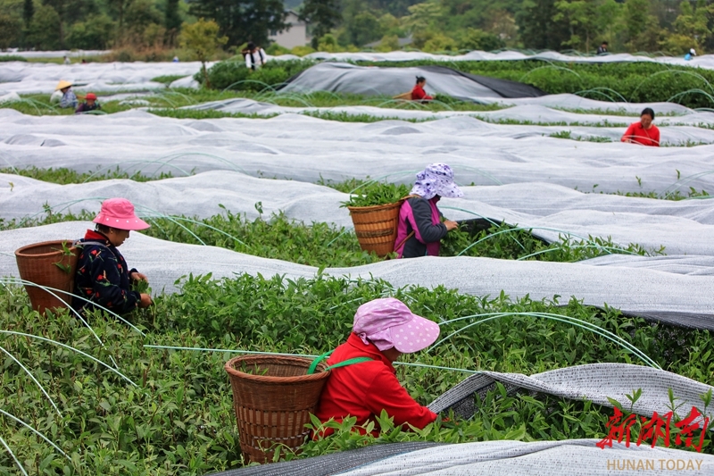 4月24日,龙山县茅坪乡茶园坪村,茶农在抹茶生产基地采摘原材料。近年来,该乡根据市场需求,及时调整茶叶产品结构,转型发展抹茶生产,有效促进农民增收。曾祥辉 摄(湖南图片库)