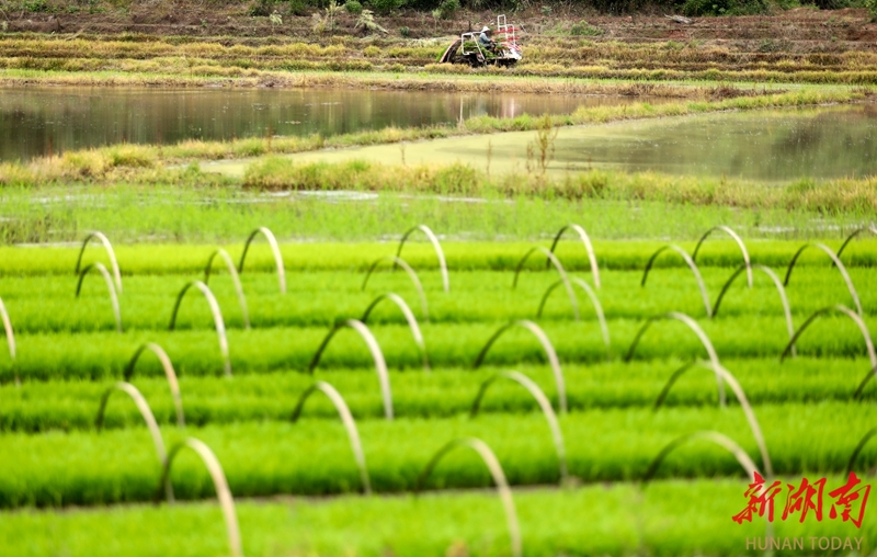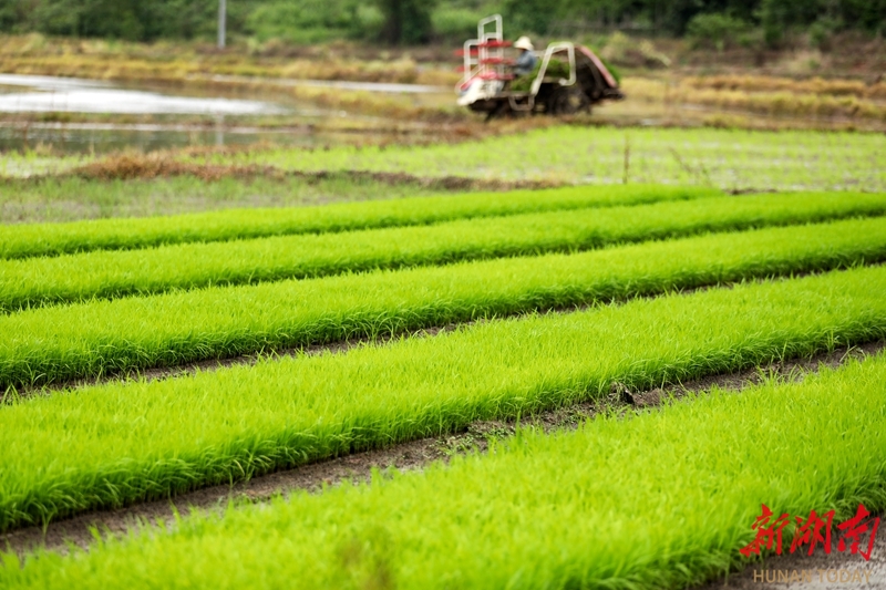 4月24日,资兴市唐洞街道镜塘村,农民驾驶插秧机抢插早稻秧苗。近年来,该市持续加大粮食生产奖补力度,大力推广早稻集中育秧和机械化插秧,扩大双季稻种植面积,全力夯实粮食稳产增产基础。李科 李铁南 摄影报道(湖南图片库)
