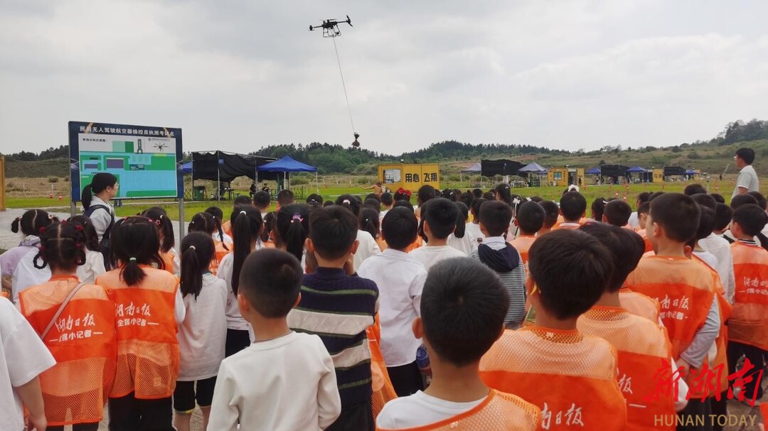 抵达植树基地后,一场精彩的无人机吊运树苗演示瞬间点燃了孩子们的热情。一架无人机载着嫩绿的小树苗从远处稳稳飞来,精准降落在指定区域。“小菱角”们仰起小脸,目光追随着无人机的轨迹,连连发出惊叹:“无人机好厉害!它把树苗‘快递’过来啦!”在科技与劳动的巧妙融合中,孩子们直观感受到现代科技为传统劳动带来的新变化,也激发了对“实践创造美好生活”的更深理解。