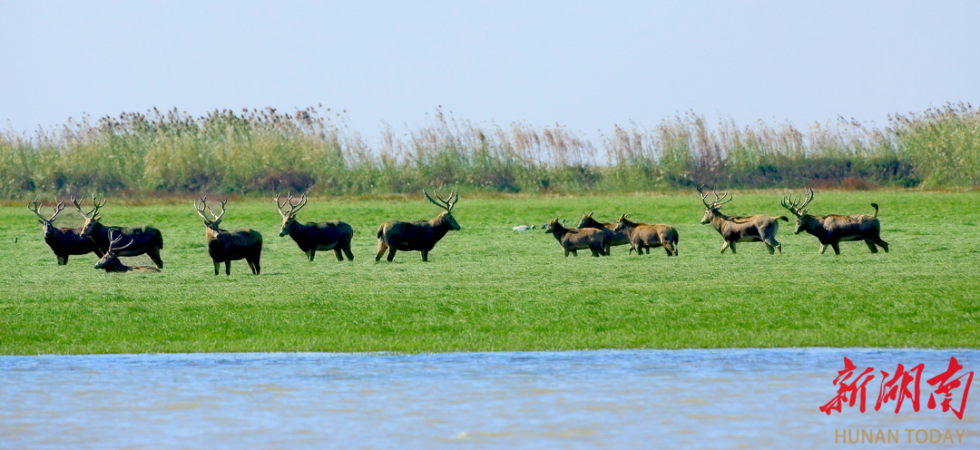 东洞庭湖麋鹿成群。