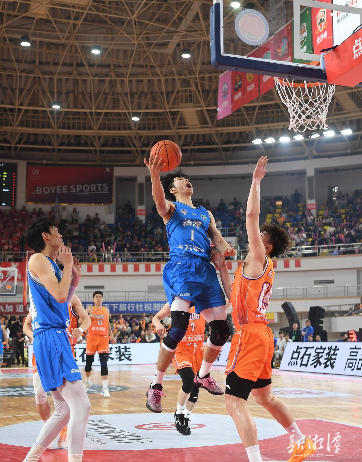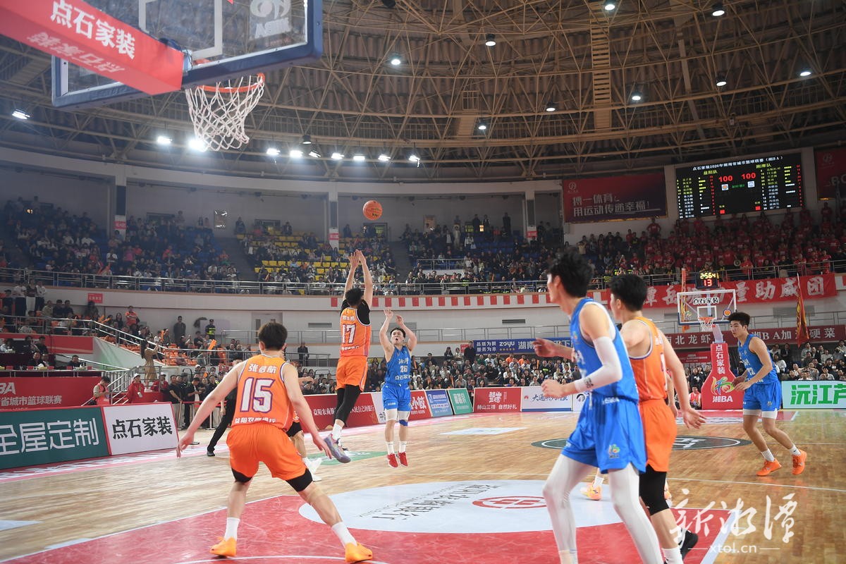 湘潭队一记3分追平比分,将比赛拖入加时赛。(罗韬 摄)