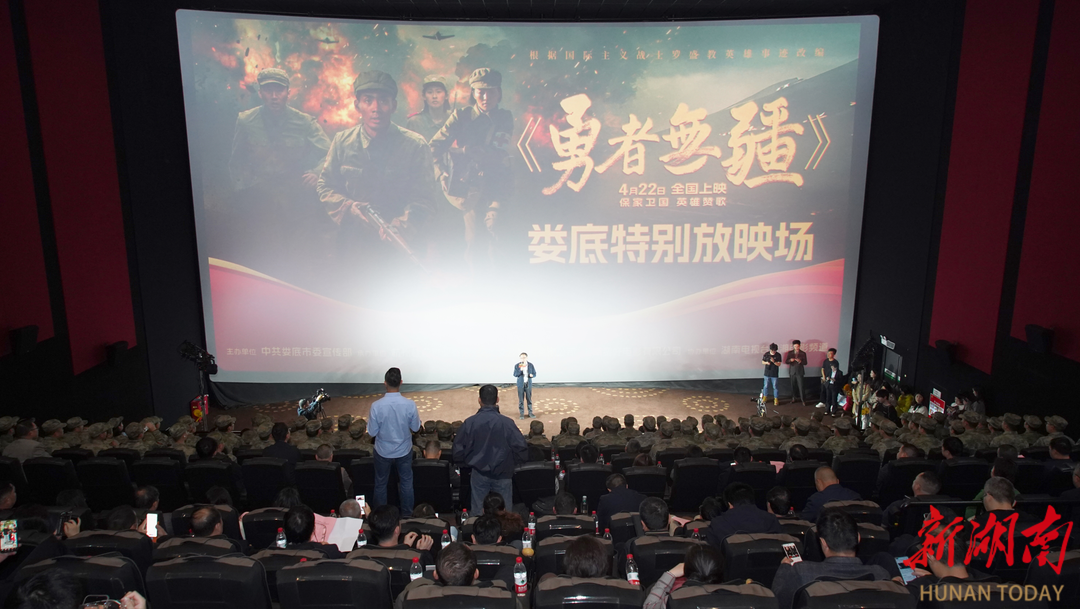 新湖南客户端4月25日讯(全媒体记者 谭好 通讯员 王东)4月22日,根据“国际主义战士”罗盛教真实事迹改编的电影《勇者无疆》在全国院线正式上映。当天,影片在娄底举办“纪念罗盛教诞辰95周年”特别放映场活动。现场氛围庄重而温暖,影片主创团队、抗美援朝英雄后代、罗盛教民兵连代表以及当地相关部门领导、媒体嘉宾齐聚一堂,共同回望那段峥嵘岁月,向志愿军英雄致以崇高敬意。