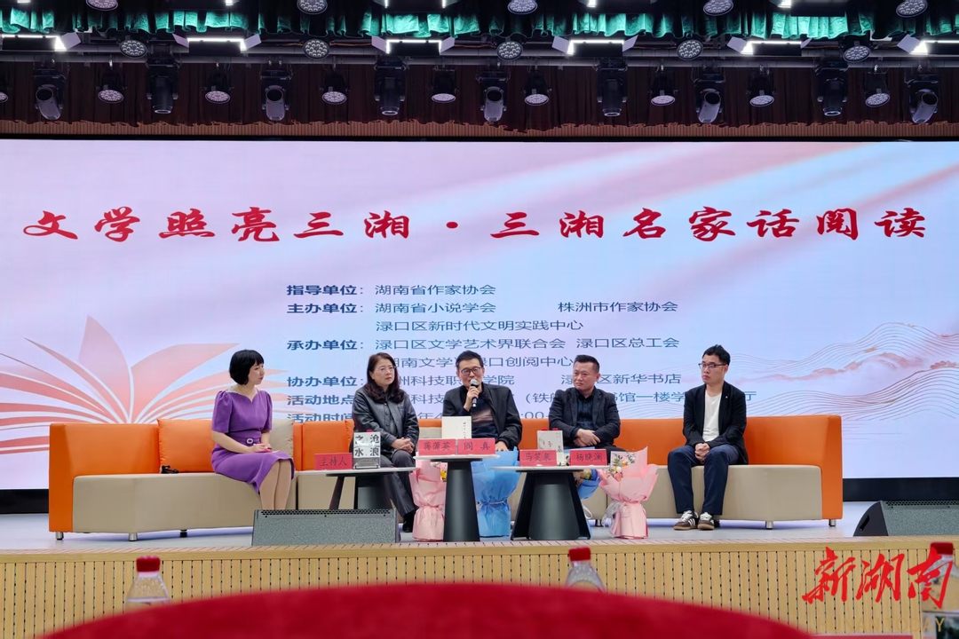 湖南日报·新湖南客户端4月25日讯(通讯员 文海艳 言博成 邓莹 张薇)4月24日,“文学照亮三湘”文学志愿服务——三湘名家话阅读暨渌口人文采风活动在株洲科技职业学院正式启幕。阎真、蒋蒲英、马笑泉、杨晓澜等文学名家走进校园、深入基层,以阅读对话青年、以文学赋能乡土,把名家领读、创作分享、版权普法、人文采风融为一体,推动全民阅读从校园延伸至城乡,为书香湖南、文化强省建设写下鲜活注脚。本次活动由湖南省作家协会指导,湖南省小说学会、株洲市作家协会、渌口区新时代文明实践中心主办,渌口区文联、区总工会、《湖南文学》渌口创阅中心承办,株洲科技职业学院、渌口区新华书店协办。