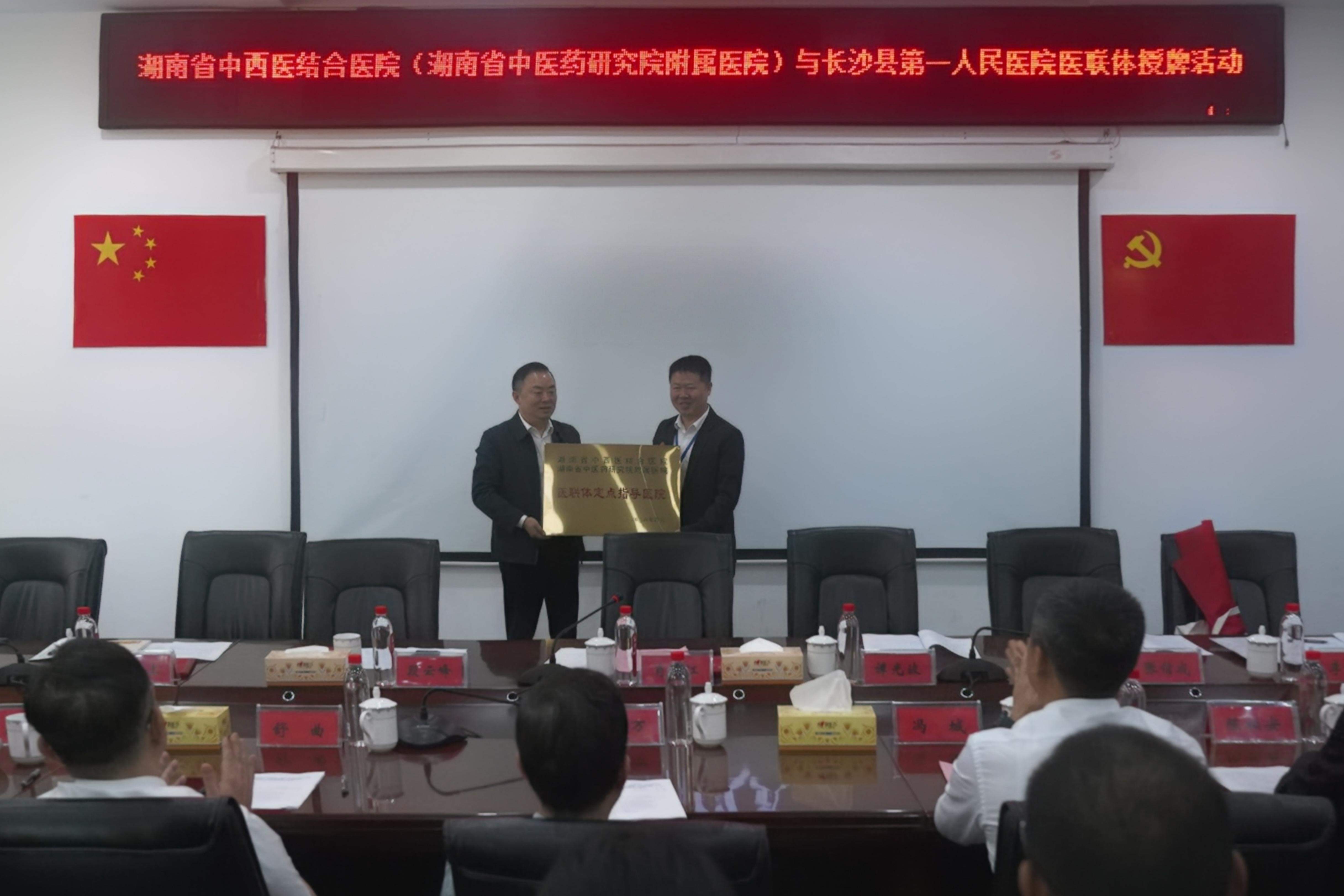 大众卫生报·新湖南客户端4月25日讯(通讯员 左丽)4月25日,湖南省中西医结合医院(湖南省中医药研究院附属医院)与长沙县第一人民医院医联体授牌揭牌活动在长沙县第一人民医院举行。