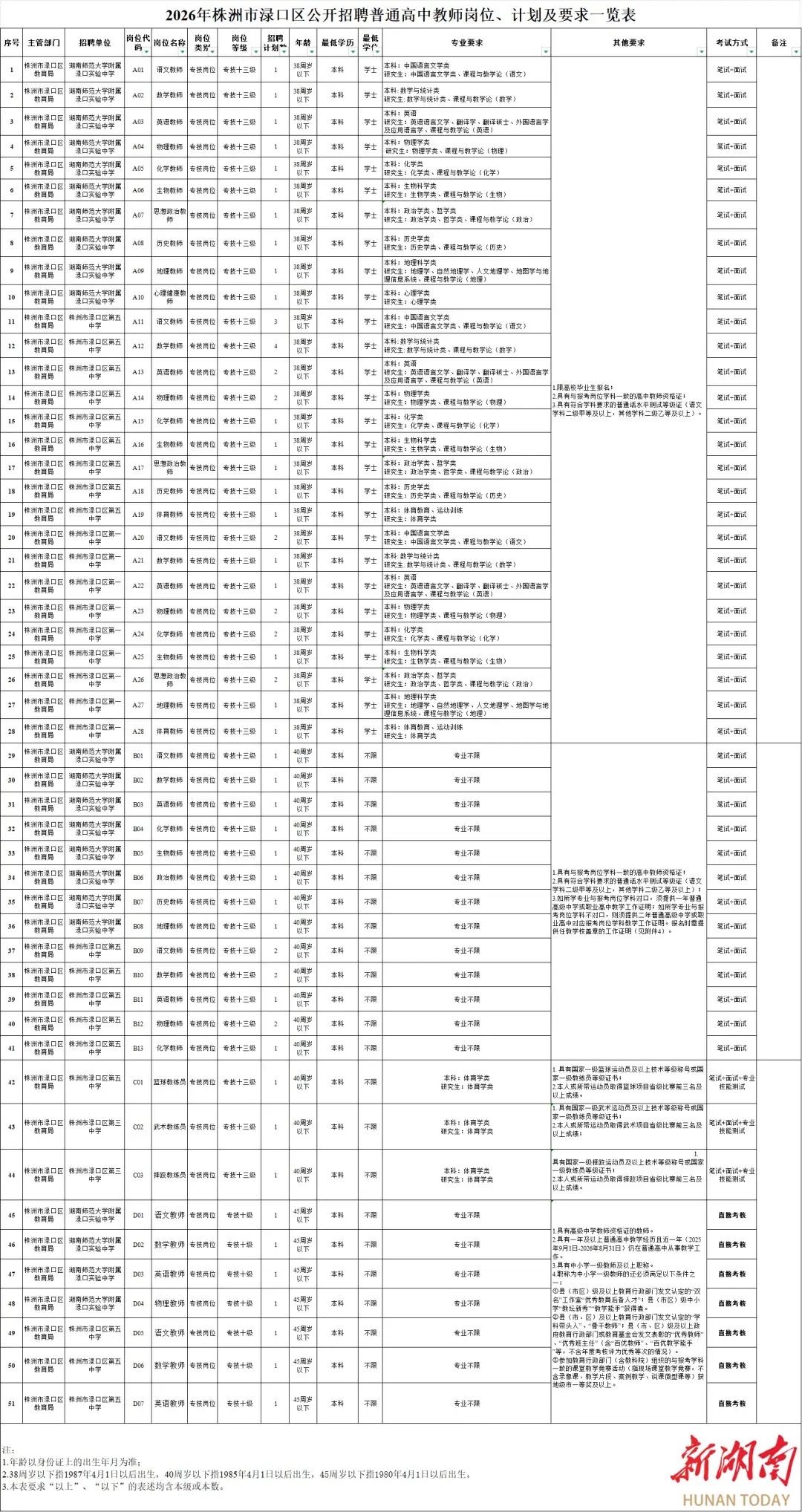 1.2026年株洲市渌口区公开招聘普通高中教师岗位、计划及要求一览表