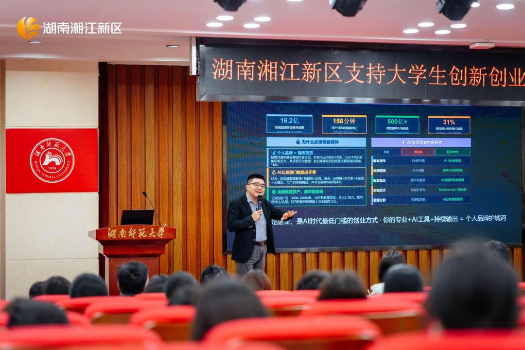 4月23日,由湖南师范大学、湖南湘江新区民政和社会保障局(退役军人事务局)、青年团湖南湘江新区(岳麓区)委员会联合主办的“青春当燃 创在湘江”湖南湘江新区支持大学生创新创业专项行动系列活动之大学生创新创业大讲堂,在湖南师范大学举行,作为走进高校孵化基地的首场活动,现场吸引了100余位青年大学生参与。