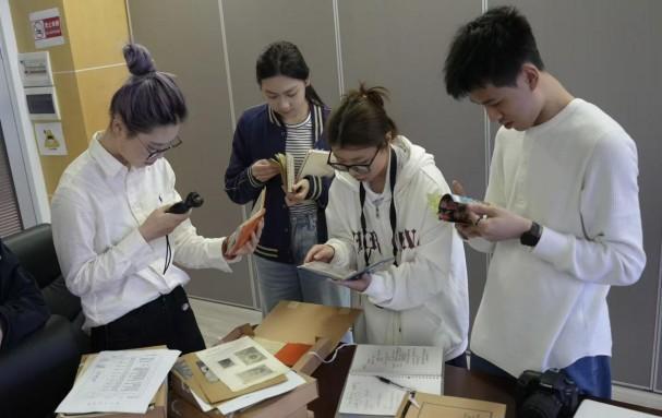 (在湖南省话剧院翻阅手绘话剧设计图集)