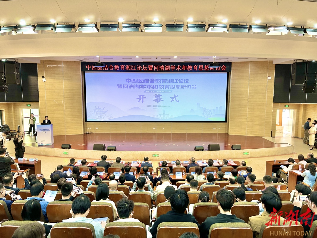 大众卫生报·新湖南客户端4月25日讯(记者 严德赢 黎明轩 实习生 王斯顺)四月星城,春雨初霁。4月25日,中西医结合教育湘江论坛暨何清湖学术和教育思想研讨会在湖南中医药大学举行,来自中西医结合领域的专家学者、高校师生共400余人参加会议。与会专家学者共沐医道,深入探讨中西医结合教育事业的发展大计。
