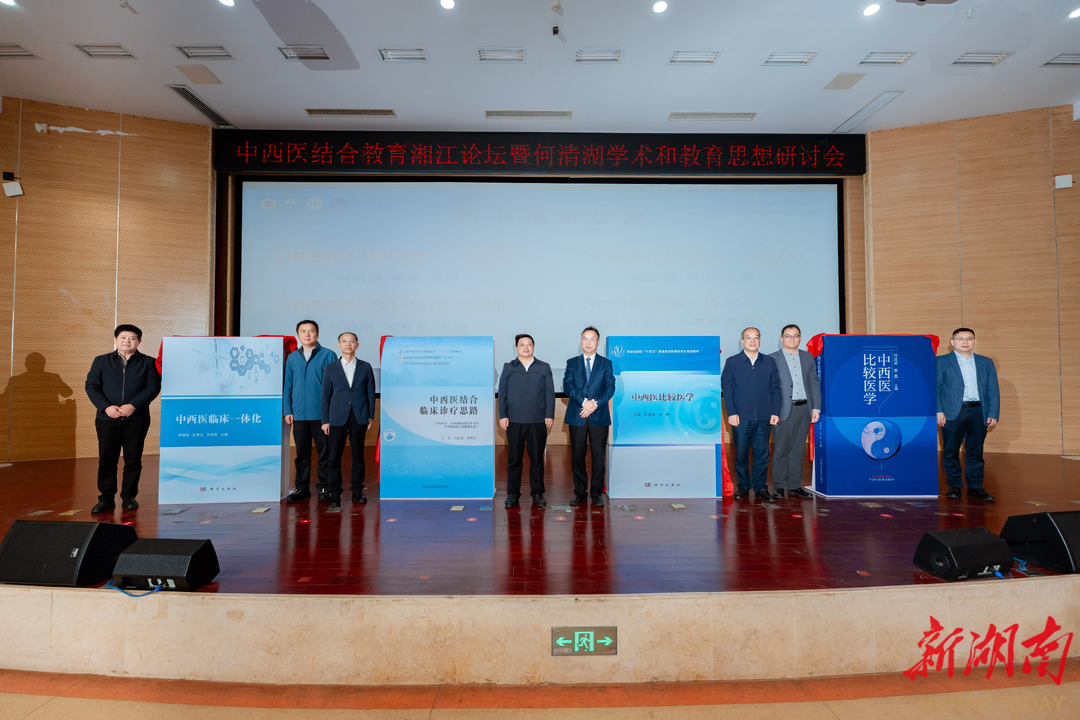 开幕式上,由何清湖教授主编的四部新书《中西医比较医学》(著作)、《中西医比较医学》(教材)、《中西医结合临床诊疗思路》《中西医临床一体化》正式揭幕。从2005年组织编纂我国第一版中西医结合规范教材,到今日四部新书出版,何清湖用20年时间推动中西医结合教材体系从零散走向系统,为我国中西医结合事业留下了宝贵的理论财富。