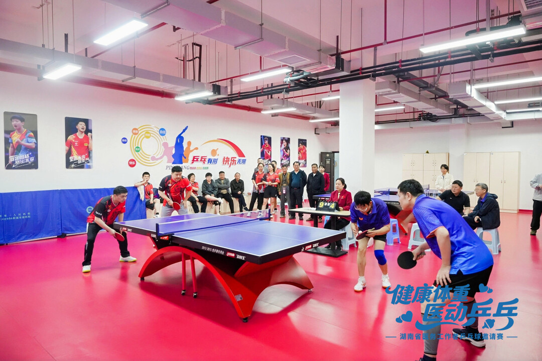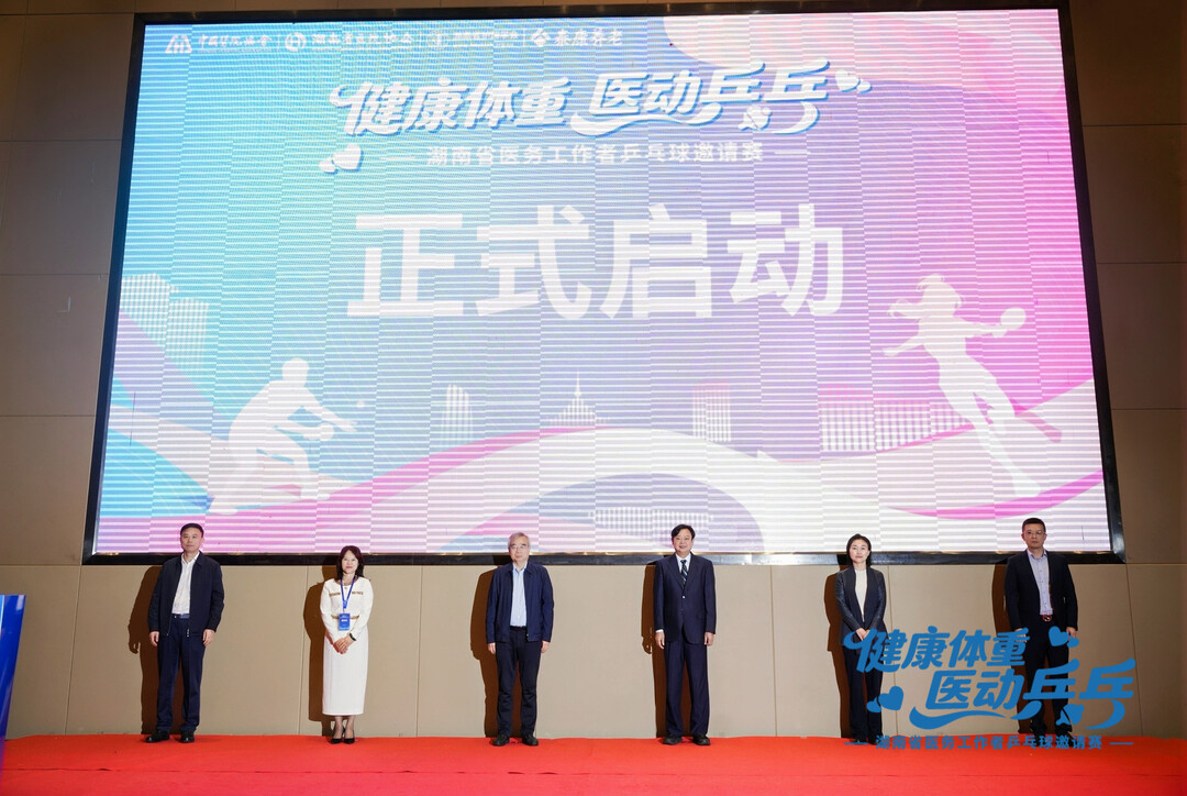 启动赛上,毛群安、龙开超挥拍参赛,湖南省人民医院、常德市第一人民医院代表队同台切磋。参赛人员精神抖擞、奋勇拼搏,充分展现了新时代医务工作者积极进取、活力满满的良好风貌,生动践行“健康体重,医者先行”理念。