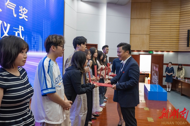 4月25日下午, “青春合伙人·学长创客厅” 成果展示暨颁奖仪式在长沙理工大学云塘校区举办。现场表彰先进并颁发各类奖项,同步开展项目推介、成果汇报、嘉宾访谈等活动,集中展现青年学子创新实践风采。图为现场颁奖。 湖南日报全媒体记者 赵持 摄