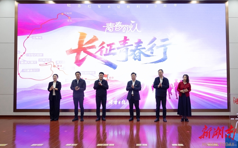4月25日下午, “青春合伙人·学长创客厅” 成果展示暨颁奖仪式在长沙理工大学云塘校区举办。现场表彰先进并颁发各类奖项,同步开展项目推介、成果汇报、嘉宾访谈等活动,集中展现青年学子创新实践风采。图为“青春合伙人·长征青春行”项目启动仪式现场。 湖南日报全媒体记者 赵持 摄