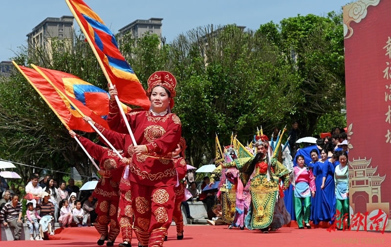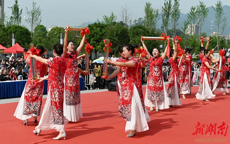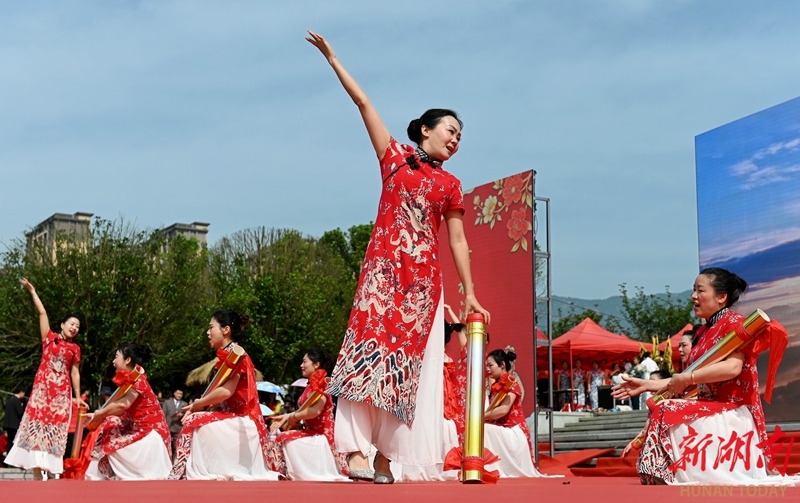 4月25日,洞口县高沙镇文艺团在表演文艺节目。当天,该县举行传统文化展演活动,通过渔鼓、舞龙、古典戏剧表演等,让居民近距离感受传统文化魅力。滕治中 滕绍忻 摄影报道(湖南图片库)