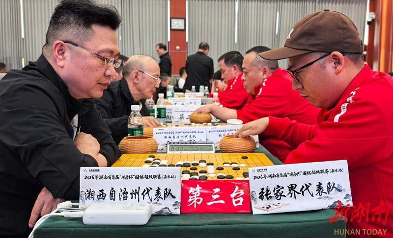 4月25日,嘉禾县新森活花海生态园,选手在比赛中。4月24日至25日,2026年湖南省“瑞奇杯”围棋超级联赛(嘉禾站)举行,来自全省14个市州的14支代表队、84名棋手齐聚“全国围棋之乡”,以棋会友。黄春涛 摄(湖南图片库)