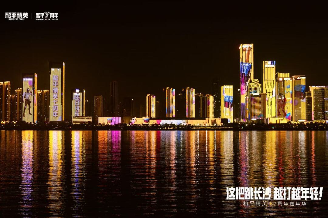 此次周年盛典也让长沙变身巨型主题城市,游戏IP元素覆盖全城核心地标。夜幕降临后,湘江两岸上演空投主题灯光秀,点亮星城夜空。城市交通枢纽、商圈大屏同步上线游戏创意打卡内容,营造浓厚的青春潮流氛围,让市民与游客随处感受数字文化与城市空间的奇妙碰撞。