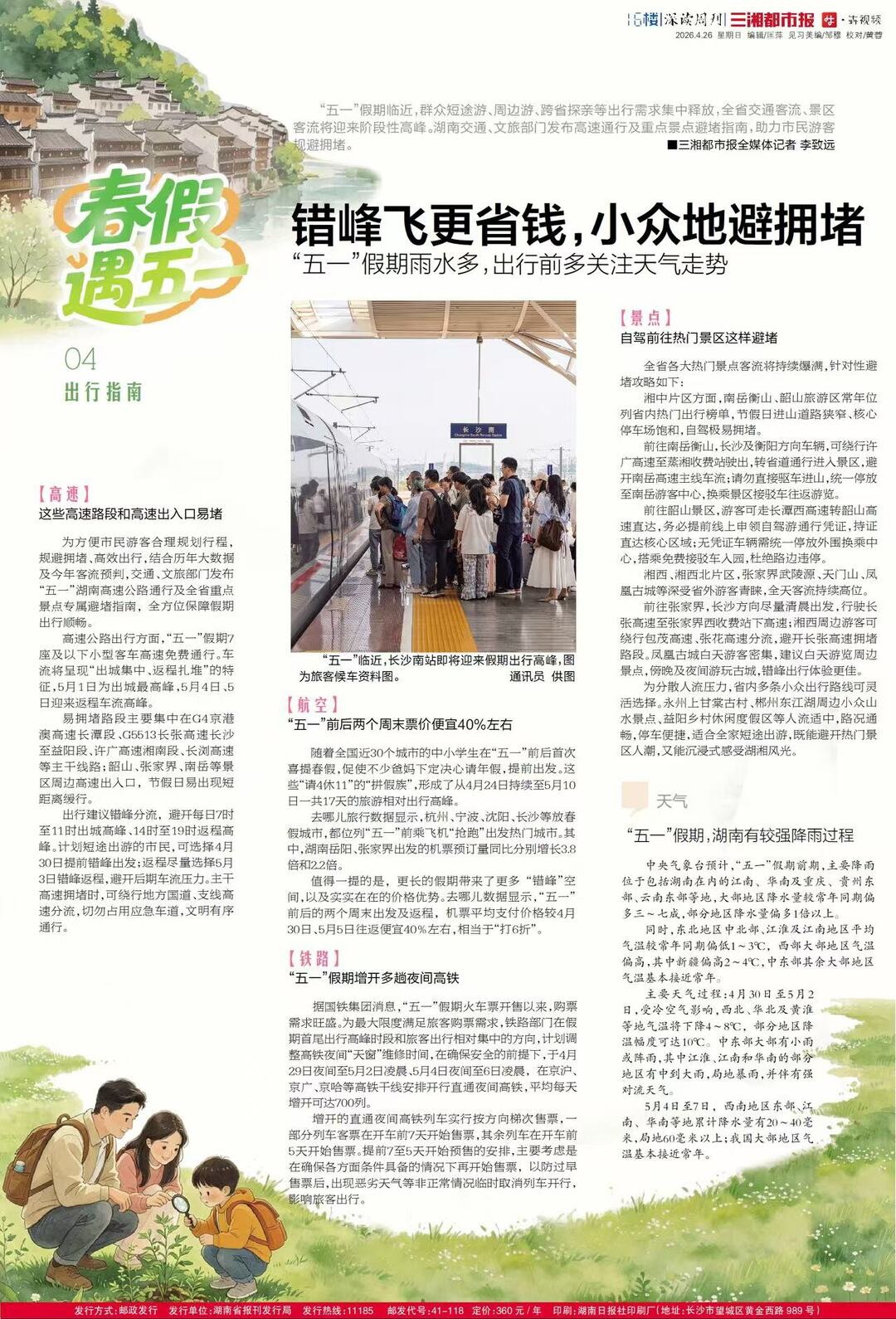 在春假遇上“五一”之际,不妨带上本报特意整理的这份出行指南,轻松出发,让旅行不再只是赶路,而是更从容地享受。